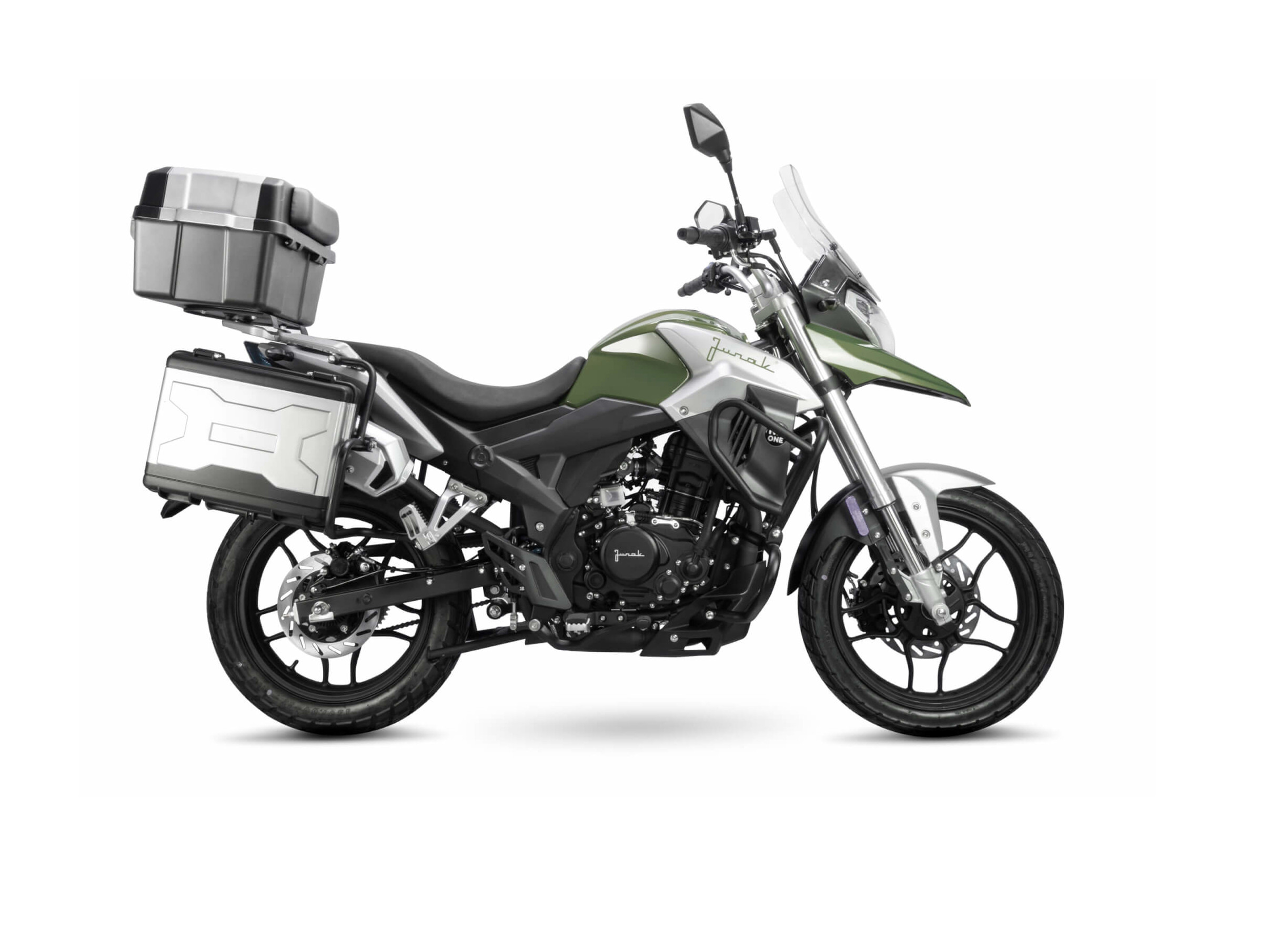 Motocykl wyposażony jest także w praktyczne elementy przydatne podczas turystycznej jazdy. Wygodna, szeroka kanapa, wysoka kierownica oraz ergonomiczna pozycja za sterami sprawiają, że nawet dłuższa podróż nie powoduje zmęczenia. Solidne opony typu dual-sport, osłona silnika oraz podwyższony prześwit pozwalają bez problemu zjechać z asfaltu i eksplorować szutrowe drogi czy leśne trasy. Dzięki temu Junak RX One jest wszechstronnym motocyklem, który świetnie sprawdza się zarówno w codziennej jeździe, jak i podczas weekendowych wypraw. 🏍️